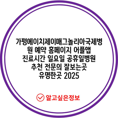“가평에이치제이매그놀리아국제병원 예약하는 방법 알아보기는 여러분의 건강을 지키는 첫걸음입니다.”