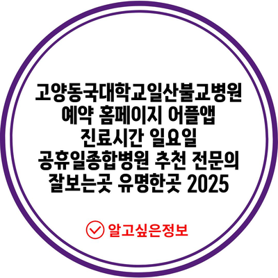 고양동국대학교일산불교병원의 예약 방법과 진료시간을 지금 바로 알아보세요!