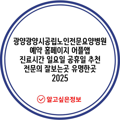 ✅ 광양시공립노인전문요양병원의 예약 방법과 진료시간을 알아보세요.