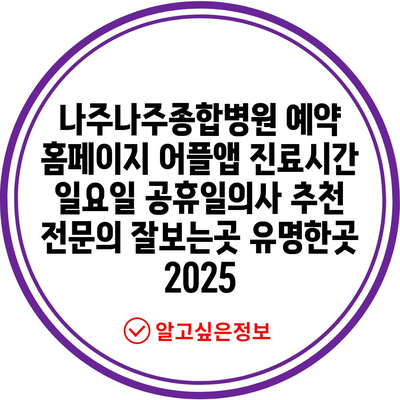 ✅ 나주나주종합병원의 진료시간과 예약 방법을 간편하게 알아보세요.