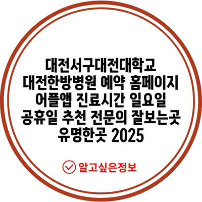 ✅ 대전한방병원의 진료시간과 예약 방법을 자세히 알아보세요.