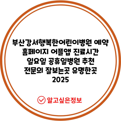 부산강서행복한어린이병원의 진료 시간과 예약 방법을 자세히 알아보세요.