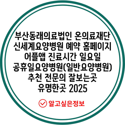 ✅ 온의료재단 신세계요양병원의 특별한 진료시간을 알아보세요.