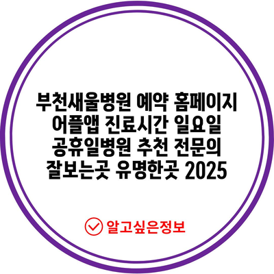 ✅ 부천새울병원의 전문의 진료 정보와 예약 방법을 자세히 알아보세요.