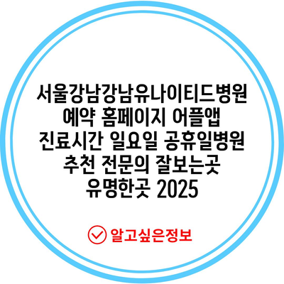 ✅ 서울강남강남유나이티드병원의 진료시간과 예약 방법을 지금 알아보세요.