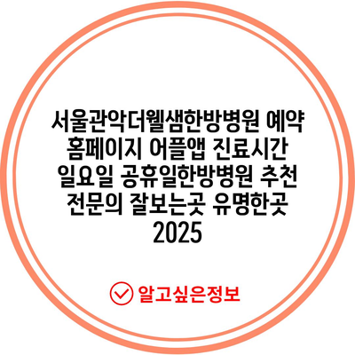 ✅ 서울관악더웰샘한방병원의 진료시간과 예약 방법을 자세히 알아보세요.