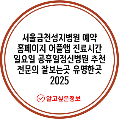 ✅ 서울금천성지병원의 최신 진료시간과 전문가 정보를 확인해보세요.