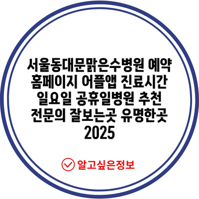 서울동대문맑은수병원의 진료시간과 예약 방법을 자세히 알아보세요.