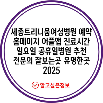 ✅ 세종트리니움여성병원의 진료시간과 예약 방법을 바로 알아보세요.