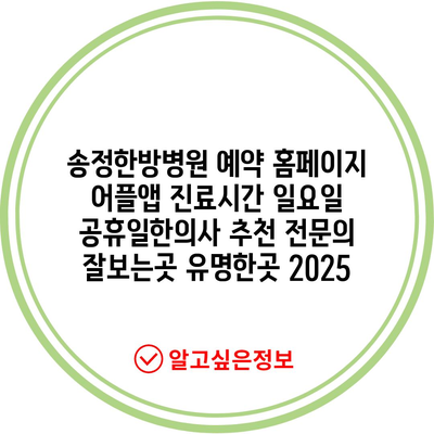 ✅ 송정한방병원의 전문가 진료시간과 예약 방법을 알아보세요.