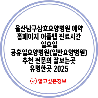 ✅ 울산남구삼호요양병원의 진료시간 및 예약 방법을 자세히 알아보세요.
