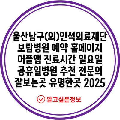 ✅ 울산남구 보람병원의 진료시간과 예약 방법을 지금 바로 알아보세요!
