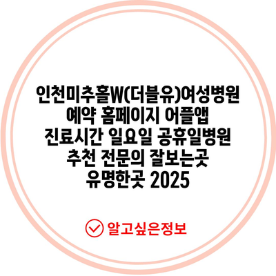 인천미추홀W여성병원 진료시간과 예약 방법을 지금 바로 알아보세요.