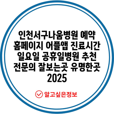 ✅ 인천서구나움병원의 진료시간과 예약 방법을 자세히 알아보세요.