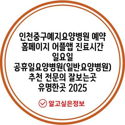 ✅ 인천중구예지요양병원의 진료시간과 예약 방법을 확인해 보세요.