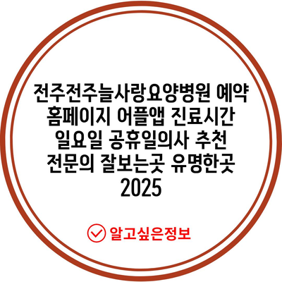 ✅ 전주전주늘사랑요양병원 진료 시간과 예약 방법을 지금 바로 알아보세요.
