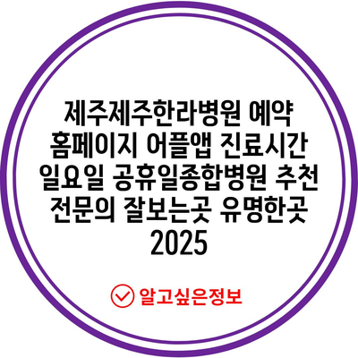✅ 제주한라병원의 진료시간과 예약 방법을 알아보세요.
