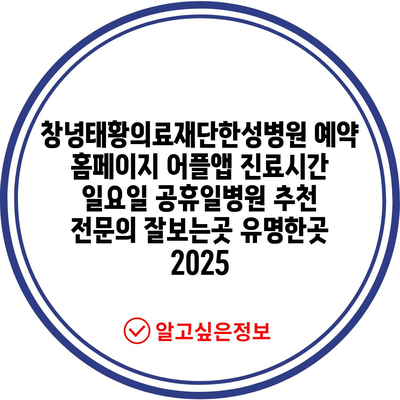 창녕태황의료재단 한성병원의 진료 시간과 예약 방법을 쉽게 알아보세요.