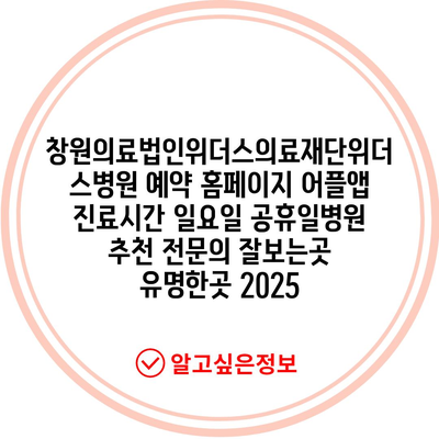 ✅ 위더스병원의 예약 방법과 진료시간을 자세히 알아보세요.