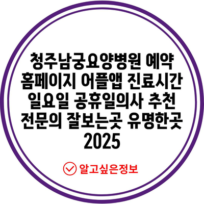 ✅ 청주남궁요양병원 예약 방법을 지금 바로 알아보세요!