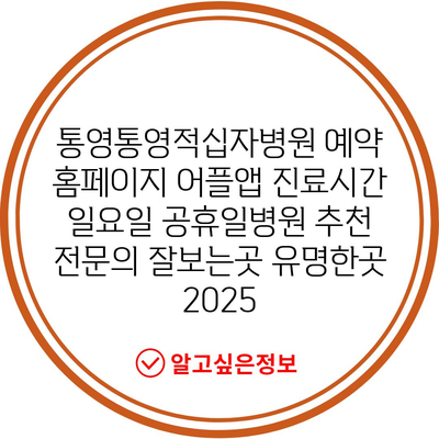 통영통영적십자병원의 진료시간과 예약 방법을 이제 쉽게 알아보세요!