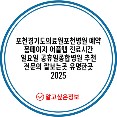 ✅ 포천병원의 진료시간과 예약 방법을 자세히 알아보세요.