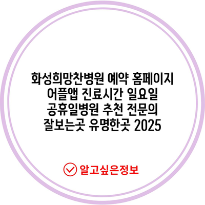 화성희망찬병원은 정밀 진료와 전문 의료진으로 유명한 병원입니다. 다양한 전문 과목을 알려드려 많은 환자들에게 믿음을 주고 있습니다. 이 병원에서 진료를 받기 위해서는 올바른 예약 방법을 이해하는 것이 중요합니다.