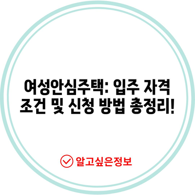 💡 여성안심주택의 입주 자격과 신청 방법을 자세히 알아보세요! 💡