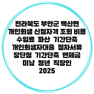 어쩌다 보니 재정적인 어려움에 처하게 되면 삶이 얼마나 힘든지 실감하게 되죠. 그런데 다행히도 그런 어려움을 극복할 수 있는 방법이 바로 개인회생입니다. 전라북도 부안군 백산면에서 개인회생을 신청하고자 하신다면, 이 글을 통해 절차, 신청자격, 비용 등을 종합적으로 정리해 보겠습니다.