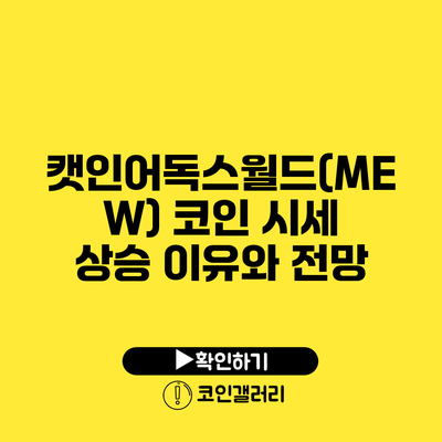 캣인어독스월드(MEW) 코인의 시세가 상승하는 이유는 여러 가지 요인에 의해 복합적으로 작용하고 있어요. 이 부분에서는 각각의 요인을 자세히 설명해보도록 할게요.