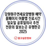 강원원주연세요양병원 예약 홈페이지 어플앱 진료시간 일요일 공휴일의사 추천 전문의 잘보는곳 유명한곳 2025