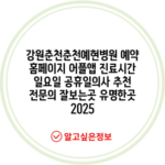 강원춘천춘천예현병원 예약 홈페이지 어플앱 진료시간 일요일 공휴일의사 추천 전문의 잘보는곳 유명한곳 2025
