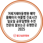 거제거제아동병원 예약 홈페이지 어플앱 진료시간 일요일 공휴일병원 추천 전문의 잘보는곳 유명한곳 2025