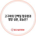고구마 단백질 함유량은 고구마 영양성분 및 효능 고구마는 단백질 함유량이 적지 않은 건강한 식재료로, 그 영양성분과 다양한 효능이 많은 사람들에게 사랑받고 있습니다. 이 블로그 포스트에서는 고구마의 단백질 함유량은 고구마 영양성분 및 효능에 대해 자세히 살펴보겠습니다. 고구마의 영양성분 고구마는 일반적으로 탄수화물의…