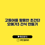 고등어를 활용한 초간단 오메가3 간식 만들기 고등어를 활용한 간식은 몸에 좋은 오메가3를 쉽게 섭취할 수 있는 방법 중 하나예요. 바쁜 일상 속에서 손쉽게 만들 수 있는 간단한 레시피를 소개할게요. ✅ 고등어의 놀라운 오메가3 효과를 지금 알아보세요. 👉 고등어의 효능 확인하기…