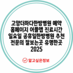 고양더하다한방병원 예약 홈페이지 어플앱 진료시간 일요일 공휴일한방병원 추천 전문의 잘보는곳 유명한곳 2025
