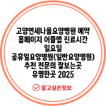 고양연세나을요양병원 예약 홈페이지 어플앱 진료시간 일요일 공휴일요양병원(일반요양병원) 추천 전문의 잘보는곳 유명한곳 2025
