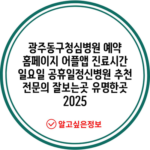 광주동구청심병원 예약 홈페이지 어플앱 진료시간 일요일 공휴일정신병원 추천 전문의 잘보는곳 유명한곳 2025