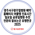 광주서구광주힐병원 예약 홈페이지 어플앱 진료시간 일요일 공휴일병원 추천 전문의 잘보는곳 유명한곳 2025