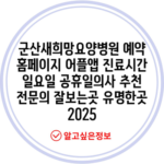 군산새희망요양병원 예약 홈페이지 어플앱 진료시간 일요일 공휴일의사 추천 전문의 잘보는곳 유명한곳 2025