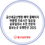 금산새금산병원 예약 홈페이지 어플앱 진료시간 일요일 공휴일의사 추천 전문의 잘보는곳 유명한곳 2025