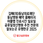 김해(의)동남의료재단 동남병원 예약 홈페이지 어플앱 진료시간 일요일 공휴일정신병원 추천 전문의 잘보는곳 유명한곳 2025