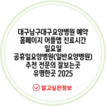 대구남구대구요양병원 예약 홈페이지 어플앱 진료시간 일요일 공휴일요양병원(일반요양병원) 추천 전문의 잘보는곳 유명한곳 2025