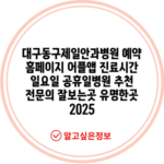 대구동구제일안과병원 예약 홈페이지 어플앱 진료시간 일요일 공휴일병원 추천 전문의 잘보는곳 유명한곳 2025