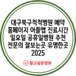 대구북구척척병원 예약 홈페이지 어플앱 진료시간 일요일 공휴일병원 추천 전문의 잘보는곳 유명한곳 2025