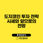 도지코인은 투자자들 사이에서 뜨거운 이슈가 되고 있습니다. 특히, 그 시세와 앞으로의 전망에 대한 논의는 많은 사람들의 관심을 끌고 있습니다. 이 글에서는 도지코인 투자 전략과 시세에 대한 자세한 분석, 앞으로의 전망에 대해 살펴보겠습니다. 도지코인 투자 전략의 중요성: 기본과 응용 완벽 이해하기…
