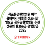 목포동명한방병원 예약 홈페이지 어플앱 진료시간 일요일 공휴일한방병원 추천 전문의 잘보는곳 유명한곳 2025