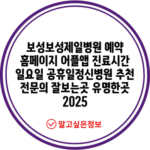 보성보성제일병원 예약 홈페이지 어플앱 진료시간 일요일 공휴일정신병원 추천 전문의 잘보는곳 유명한곳 2025