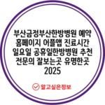 부산금정부산한방병원 예약 홈페이지 어플앱 진료시간 일요일 공휴일한방병원 추천 전문의 잘보는곳 유명한곳 2025