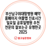 부산남구위대항병원 예약 홈페이지 어플앱 진료시간 일요일 공휴일병원 추천 전문의 잘보는곳 유명한곳 2025